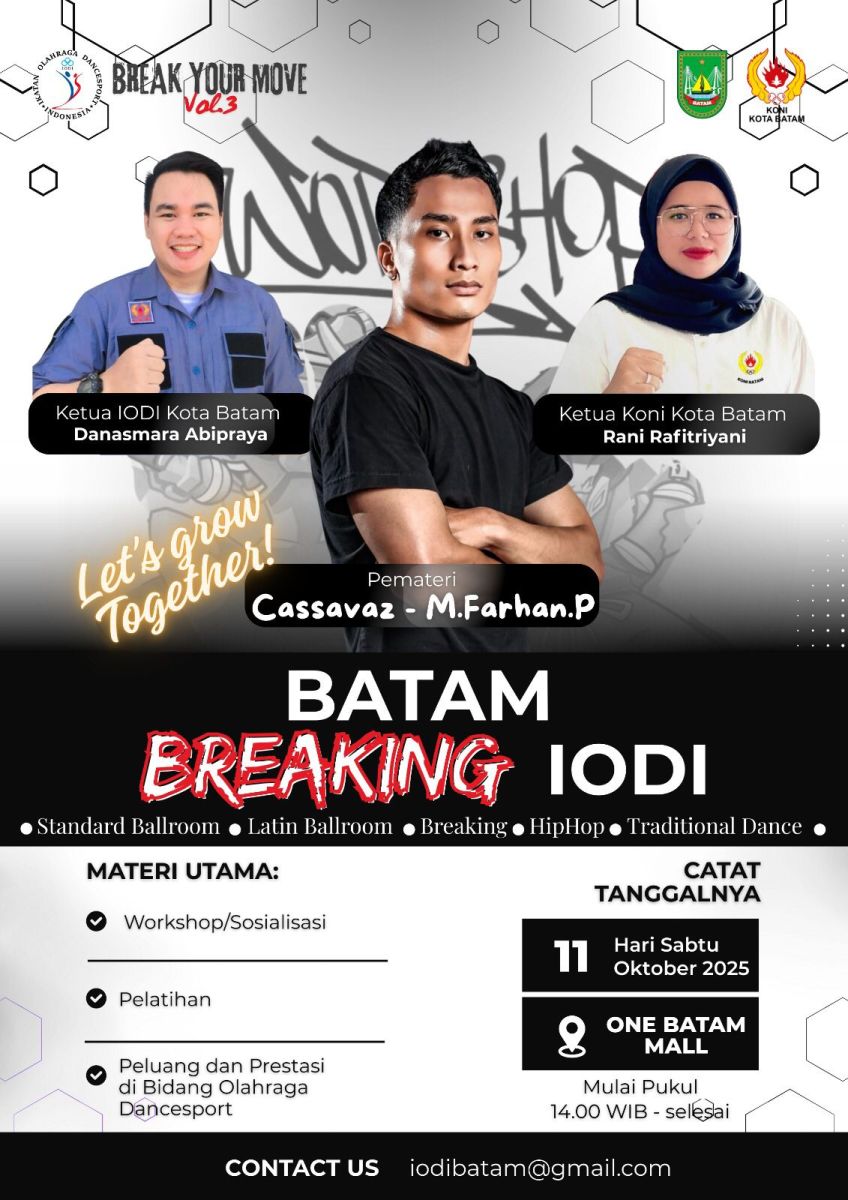 Dalam acara tersebut, atlet IODI Batam Jhordy Erianaldo tampil sebagai narasumber dan memperagakan gerakan dasar breaking di hadapan para siswa. Aksi Jhordy mendapat sambutan meriah, terlihat dari antusiasme pelajar yang mencoba mengikuti gerakan dance sport yang enerjik dan penuh kreativitas.