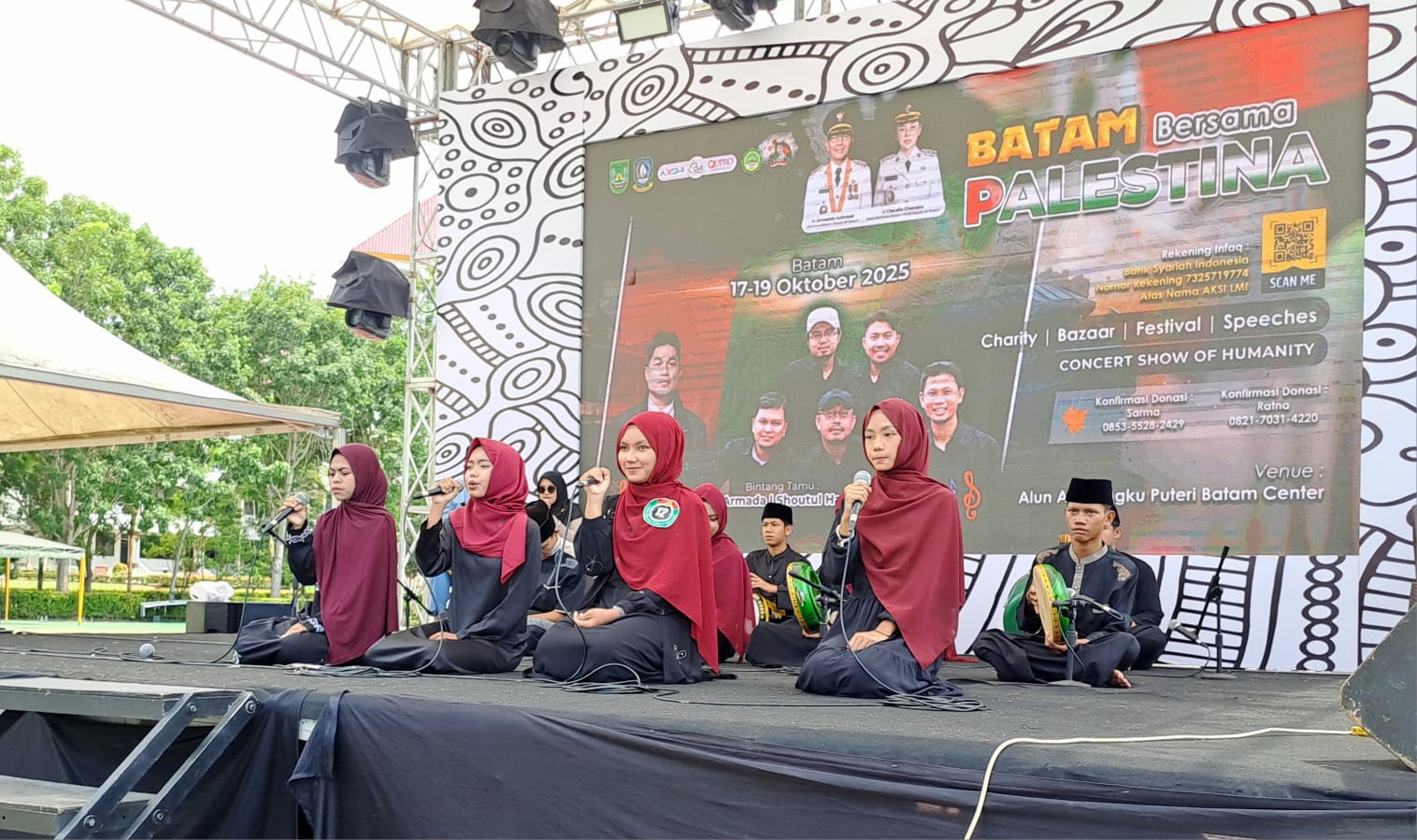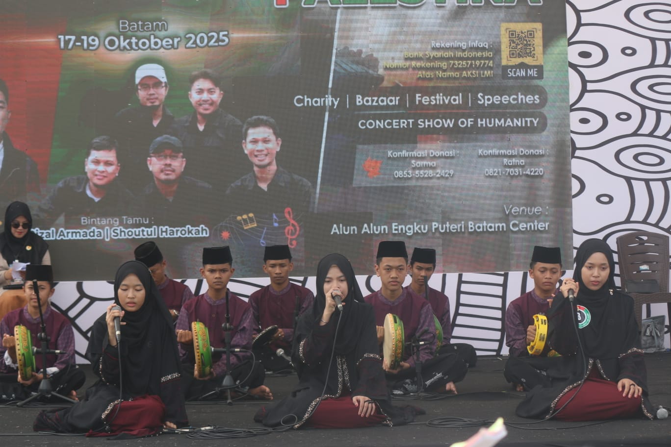 GLOBALKEPRI.COM, BATAM – Ratusan pelajar dari berbagai sekolah di Kota Batam antusias mengikuti Festival Hadroh yang digelar oleh Karang Taruna Kota Batam. Kegiatan ini merupakan bagian dari rangkaian acara “Batam Bersama Palestina” yang berlangsung di Lapangan Engku Putri, Batam Centre, mulai 17 hingga 19 Oktober 2025.