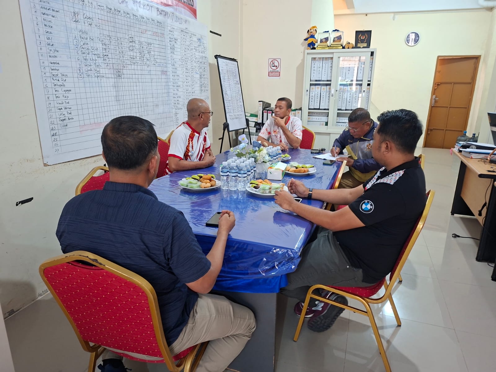 Kunjungan ini menjadi ajang berbagi pengalaman sekaligus diskusi mengenai berbagai isu penting seputar pengembangan olahraga daerah, mulai dari pengelolaan dana hibah, penyelenggaraan Pekan Olahraga Kota (PORKOT), hingga persiapan menuju Pekan Olahraga Provinsi (PORPROV).