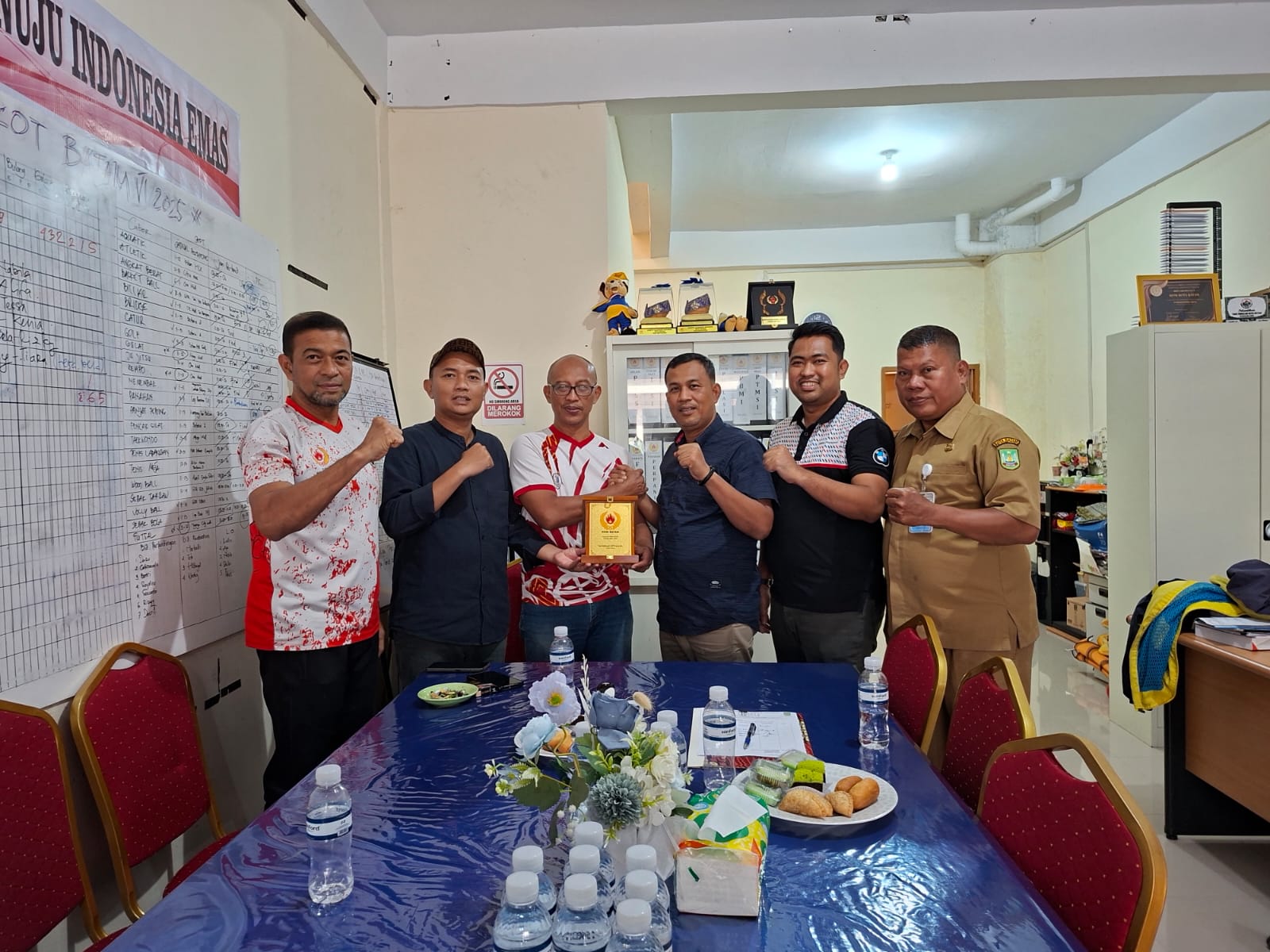 Foto Bersama Pengurus KONI Batam Memberikan Plakat Kepada pengurus KONI Dumai