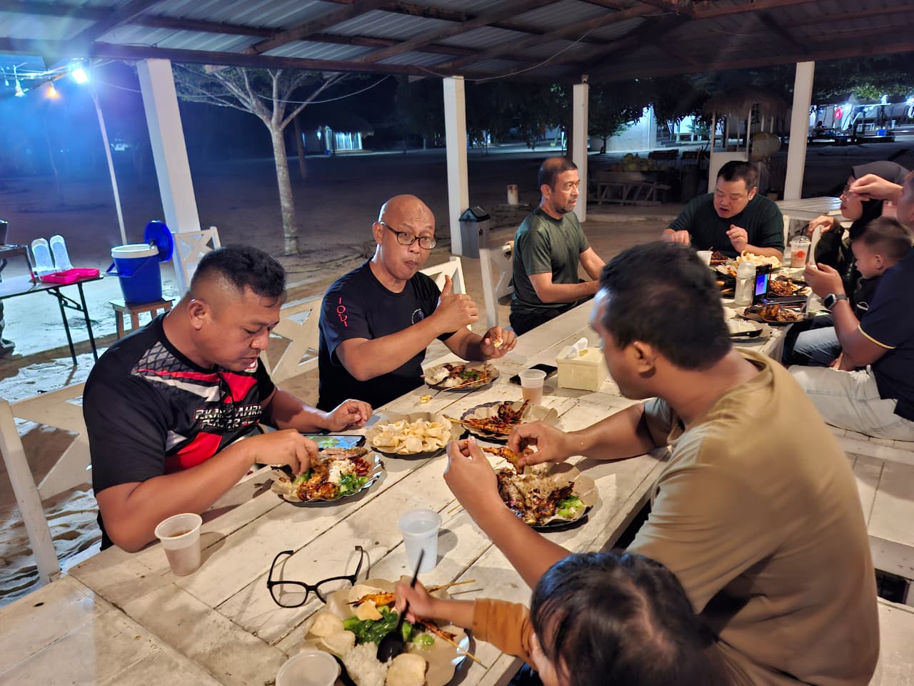 Memasuki malam hari, kebersamaan semakin terasa saat seluruh peserta mengikuti acara barbeque bersama. Beragam menu tersaji, di antaranya ayam bakar, ikan bakar, udang bakar, jagung bakar, hingga terong bakar. Santap malam berlangsung hangat dan penuh canda, diiringi suasana pantai yang tenang serta alunan musik klasik yang menambah kesan syahdu.